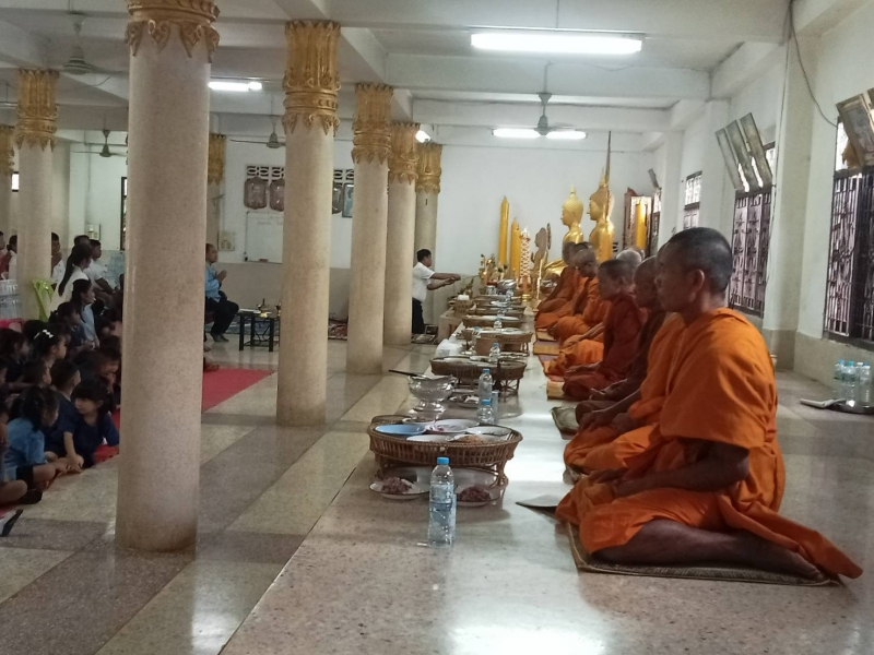 ถวายภัตตาหารเพลแด่พระสงฆ์ ในห้วงการเข้าพรรษา วันนี้ร่วมทำบุญที่วัดทักษิณ บ้านสระ หมู่ที่ ๗