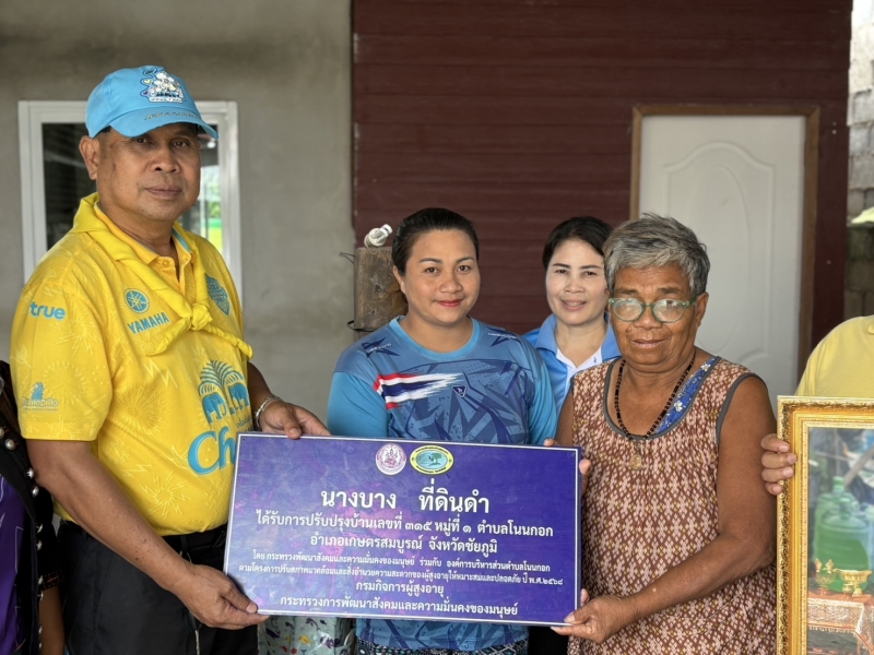 ที่ได้รับมาจาก พมจ.ชัยภูมิ จำนวน ๒ คัน คันที่ ๑ ส่งมอบให้กับ นายนิวัติ นอกสระ ราษฎรบ้านสระ หมู่ที่ ๗ คันที่ ๒ ส่งมอบรถจักรยานสำหรับผู้พิการ ให้กับ นายสำราญ อาจวงษ์ ราษฎรบ้านเมืองกลาง หมู่ที่ ๑ และส่งมอบบ้าน จำนวน ๒ หลัง ซึ่งเป็นงบจาก พมจ.ชัยภูมิ ที่ได้ซ่อมแซมให้กับผู้สูงอายุที่แล้วเสร็จหลังที่ ๑ ให้กับ นายหนูนา บัวสระ ราษฎรบ้านสระ หมู่ที่ ๖ และส่งมอบบ้านที่ได้ซ่อมแซมให้กับผู้สูงอายุที่แล้วเสร็จให้กับ นางบาง ที่ดินดำ ราษฎรบ้านเมืองกลาง หมู่ที่ ๑